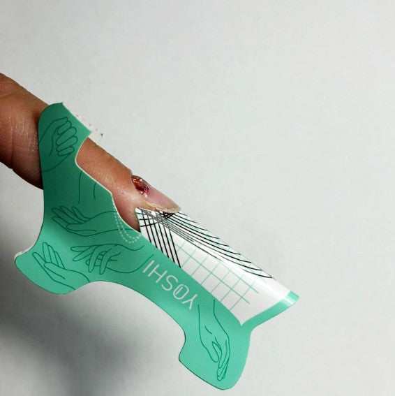 Orientacinės linijos ant formelės leidžia atlikti nago plokštelės prailginimą bet kuriai norimai nago formai.